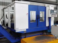 火車鉤尾框承載面加工專機,本機床為臥式單面布置,前面數控移動工作臺上安裝有回轉夾具,后面數控移動工作臺上配有專用雙軸銑削動力頭。夾具具有自動回轉及回轉到位后自動鎖緊功能,回轉角度由固定擋鐵控制,更換品種時需更換擋鐵塊。本機床主要用于13B、17型、力拓40T鉤尾框承載面的銑削加工,生產節拍:4分鐘/件。工件以底面、側面及尾部定位,液壓油缸夾緊。人工吊裝上下料,一次一件,液壓夾緊,數控系統控制,并配有獨立的液壓站、電氣柜、集中潤滑裝置。本機床加工剛性好,并適合多品種加工。